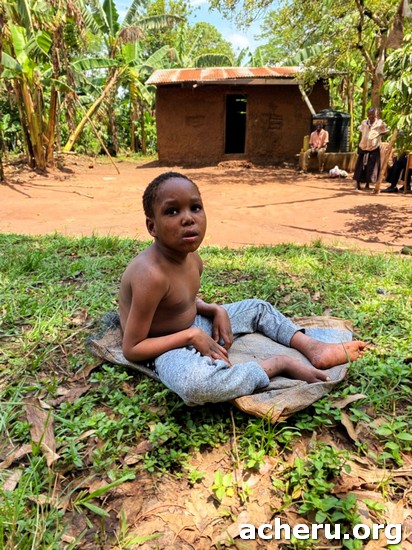 | But I thank God for ACHERU who identified us and gave us the best care. Indeed my boy was going to die. He wasn't eating well not even able to sit on his own. They gave us nutritious food and milk which brought him back to life. He is able to sit and crawl form one place to the other after good physical exercises" |
