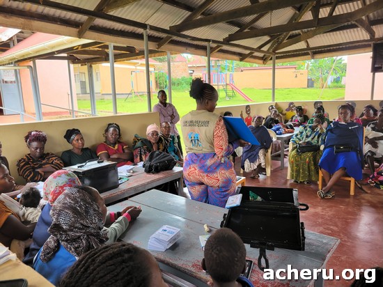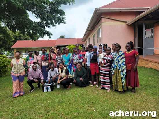 | Acheru does all it can to assist the carers of disabled and needy children. As well as dealing with poverty they may also suffer isolation so Acheru, with our partner BONDECO who work with refugees, tries to form them into groups who can support and encourage each other. They are given counselling, health education, and also advice on trying to set up small income generating schemes. One recent meeting at Acheru was attended by 55 carers. |